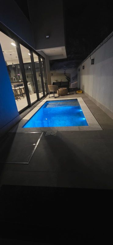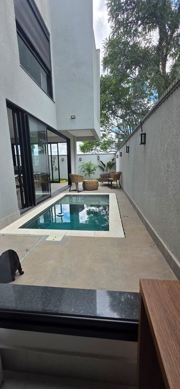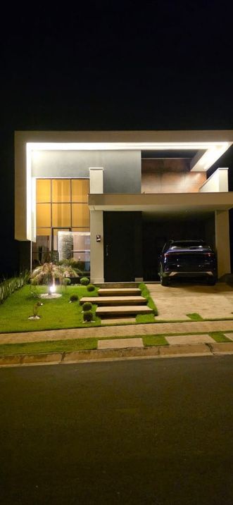 O imóvel conta com 202 m² de terreno e 190 m² de área construída, apresentando arquitetura moderna com fachada imponente, amplos panos de vidro, iluminação em LED e pé-direito elevado, que valorizam o projeto desde a entrada.