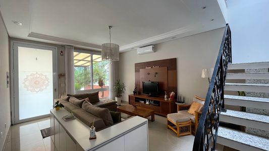 Lindo sobrado no Cond. Montreal. Sol da manhã, em rua pequena próximo a mata e portaria. Autossuficiente em energia fotovoltaica. Carregador para carro elétrico. Três quartos amplos, sendo uma suíte com varanda Spa e banheiro social com sauna a vapor. Living amplo em 4 ambientes mais lavabo. Área Gourmet completa com banheiro externo e ducha. Planejados e Split instalado em todos os ambientes. Terraço com vista livre 360 graus e ducha cascata. Ampla área de armazenamento. Área do terreno 150 m2 e área construida interna 163,04 m2 mais garagem.